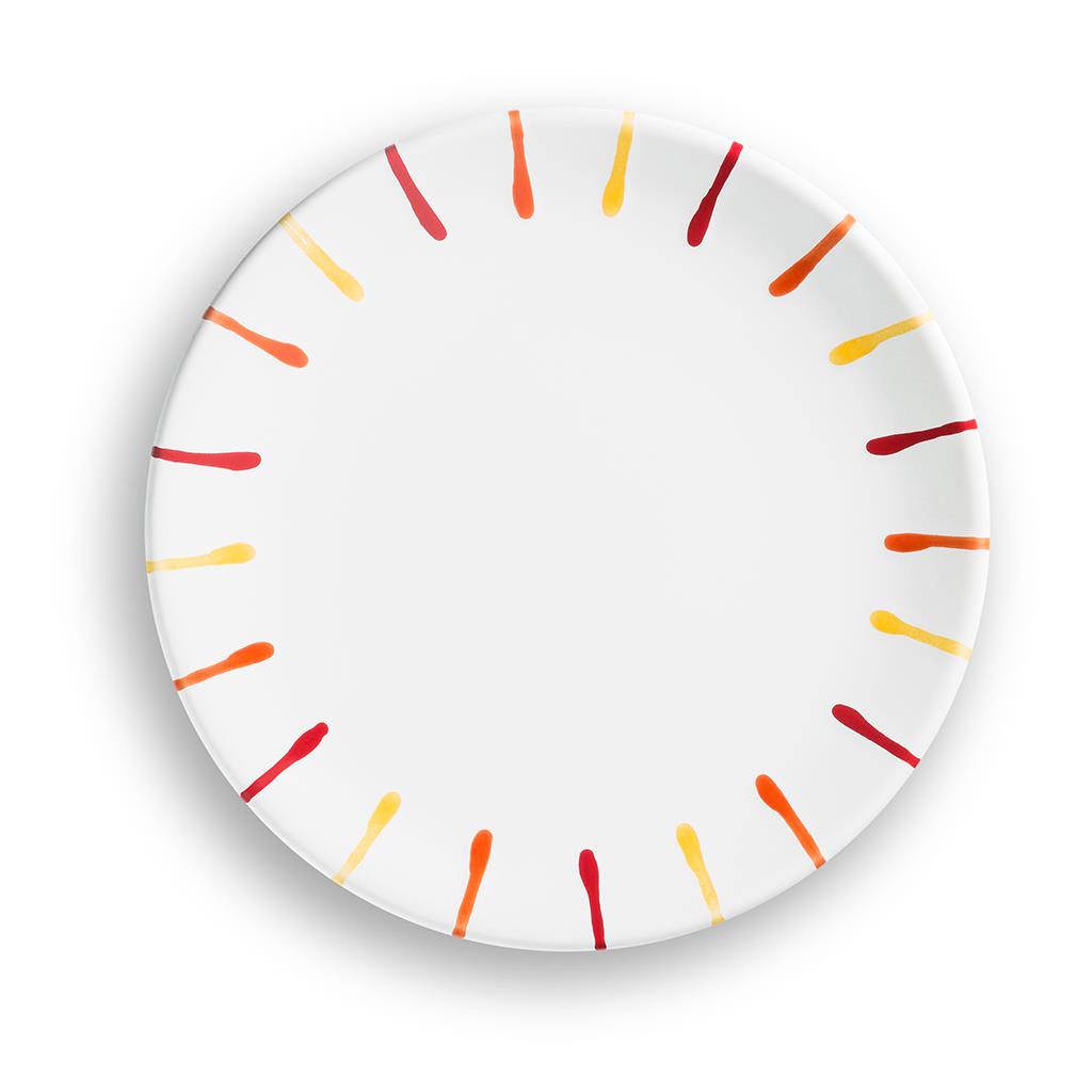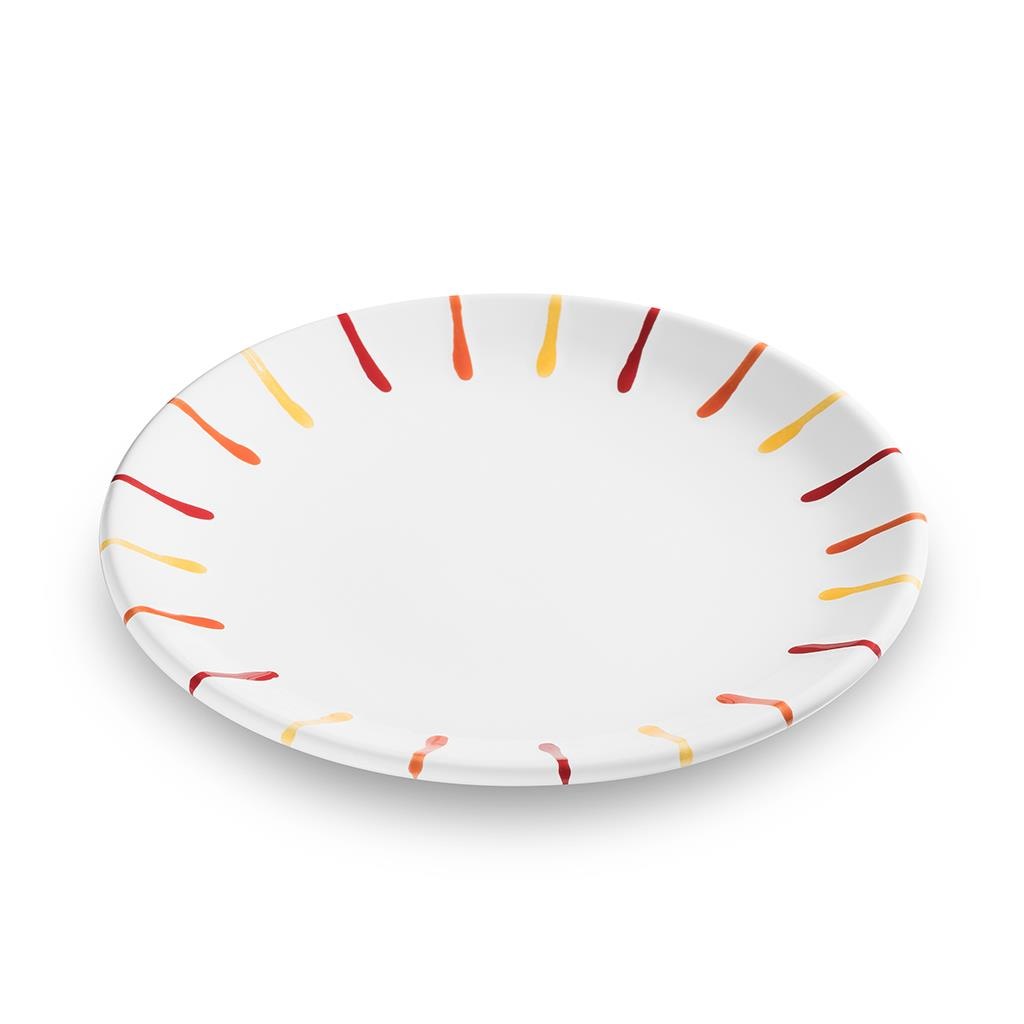 取り皿として毎日の食事にも使い勝手の良い直径20cmサイズです。市販の食パンをぴったり一枚載せるのに最適です。また、ケーキなどのデザートにうってつけです。カラフルデザインがお料理を引き立たせること間違えなしです。
